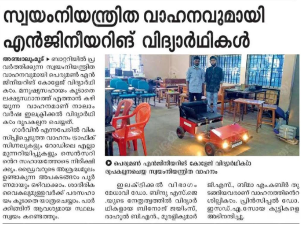 BEST PROJECT AWARD: Solar Powered Lawn Mover by Divya S, Gayathri M S, Sruthi Krishna R, Akhila B and Aswaraj S won third prize for the event project expo organised by College of Engineering Attingal.