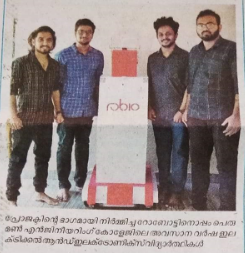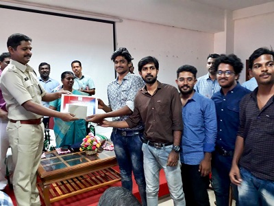 JAGRATHA 2018: Final year students of Department of Electrical & Electronics Engineering participated in the project exhibition ‘JAGRATHA 2018’-Traffic Expo organised by Kerala Police from 02/02/2018 to 04/02/2018 at Bishop Jerome Institute, Kollam. Among the four groups, ‘Automatic collision avoidance system’ by Albin Koshy, Anand Santhosh, Ananthu V Krishnan, Sumesh S and Amal Mohan won third prize and the other three groups secured certificate of appreciation.